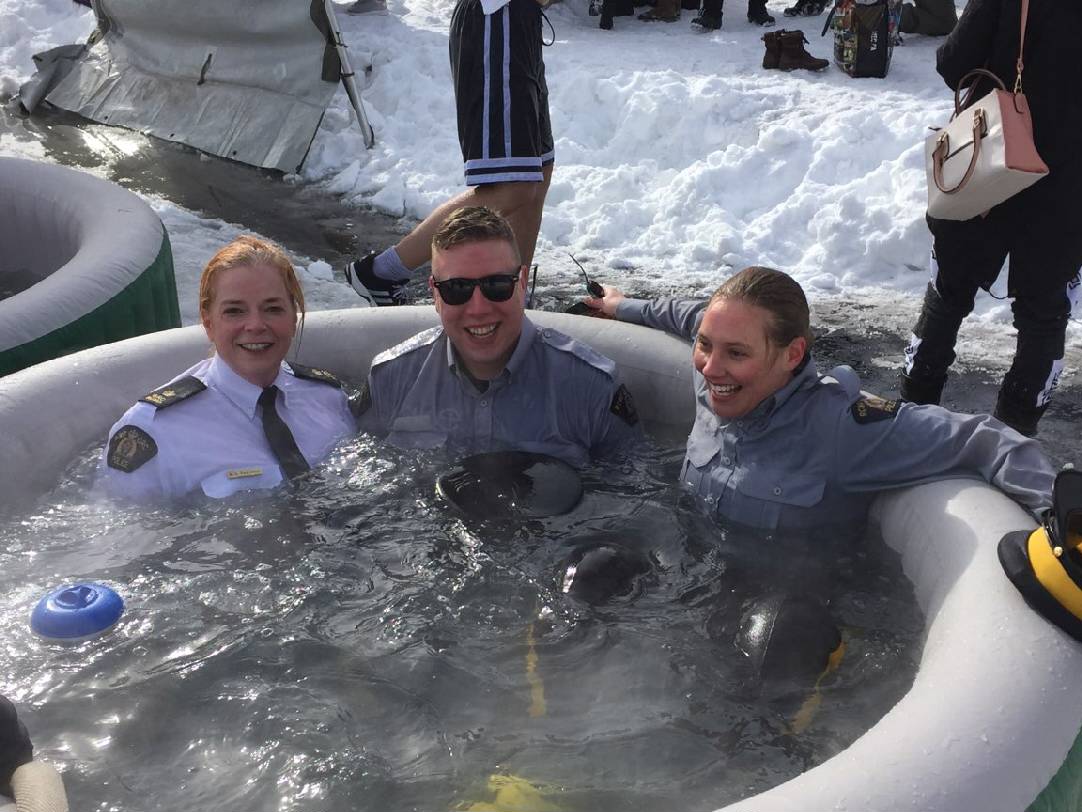 On Saturday, Feb 24, 2018, Airdrie RCMP officers; Inspector Kim Pasloske, Constable Kaeli Ritchie, and Constable Sylvain Nicolas participated in the 2018 Polar Plunge put on by the Alberta Law Enforcement Torch Run in Calgary.