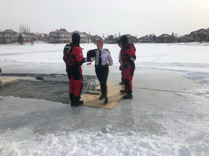 Airdrie, Alta – On February 23, 2019, 6 brave RCMP officers from the Airdrie RCMP detachment plunged into one of Calgary’s icy lakes in support of the Special Olympics.