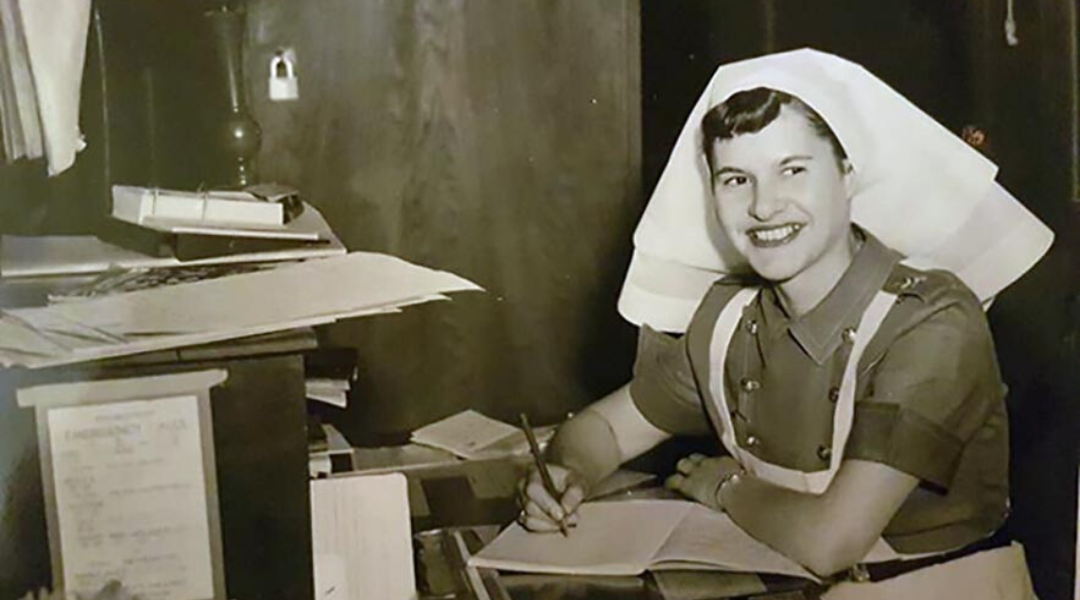 In 1951, she was deployed to Japan to work at the Commonwealth General Hospital in Kure where she treated survivors of nearby Hiroshima alongside her friend, Jan.