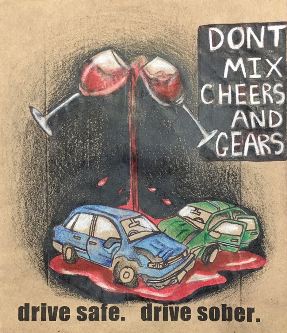 “Participating in the liquor bag campaign has been a great opportunity. I created my bag in hope of having a positive effect on one’s decision to not drink and drive. When you make the decision to drive under the influence of alcohol you are not only putting yourself at risk, but also those around you. Understanding the consequences of drunk driving is important and can save lives.”