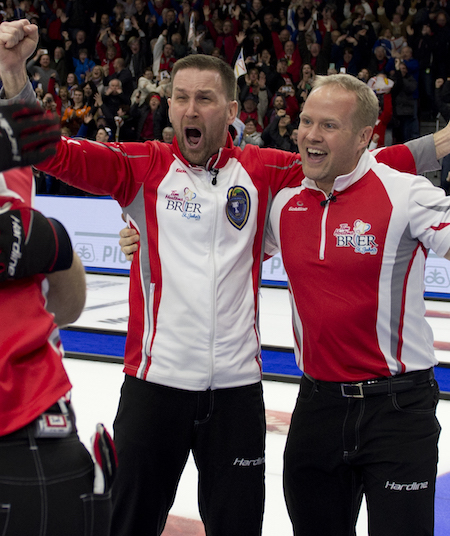 The 36-year-old St. John’s native and his Newfoundland/Labrador teammates beat Kevin Koe and Team Canada 7-6 Sunday to win his first Tim Horton Brier title before a sellout audience of 6,471 screaming fans who filled Mile One Centre.