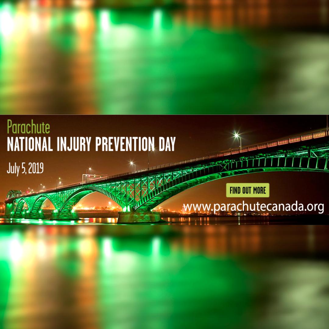 Canadians can support National Injury Prevention Day by taking photos of these landmarks that are lighting up on July 5, and by joining the conversation on social media using #ParachuteNIPD and #TurnSafetyOn to help us work towards a Canada that is free of serious injuries. Check out our NIPD website for a social media guide, information and the latest news on cities joining our “Light Canada Green” campaign.